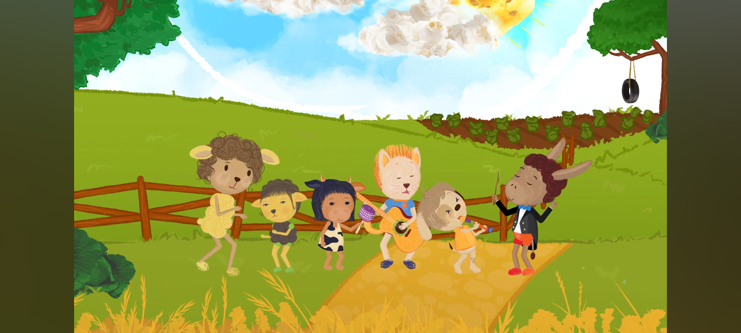 A proposta articula dois formatos complementares: clipes e karaokês interativos. Nos clipes, imagens, movimentos, efeitos visuais e sonoridades estimulam experimentação, formação estética e imaginação. Nos karaokês, cada canção é apresentada em etapas guiadas por uma fala acolhedora, que, a seguir, apresenta o canto-modelo, cuja melodia é repetida por um piano guia, permitindo que as crianças memorizem e cantem progressivamente, exercitando autonomia vocal, ritmo e expressividade corporal.